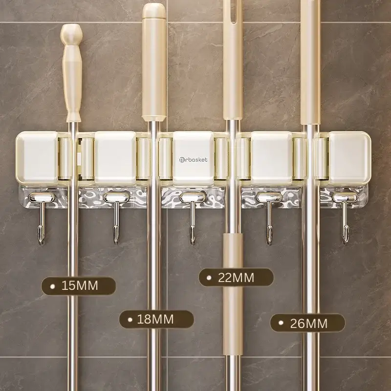 - مشابك سيليكون سميكة مانعة للانزلاق تثبّت المكانس والمماسح بإحكام.